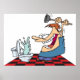 Um encanador engraçado com um êmbolo para desbloquear um banheiro. Esta design parece realmente eficaz nestes Poster