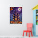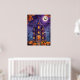 Entra num mundo de encantamento assustador com esta ilustração caprichosa de uma casa assombrada. Perfeito para o Halloween, esta trabalho de arte apresenta uma casa alta e estreita com arquitetura gótica exagerada, colocada contra um céu noturno iluminado por uma lua de cheio. Os morcegos andam à volta, enquanto as árvores nuas e as lanternas de jack-o-lanternas somam à atmosfera estranha. O outono caído deixa completa esta cena cativante, fazer-a como uma adição ideal ao seu decor de Halloween.