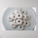 Fecho das rosquinhas em pó numa placa. Copyright: imagens brilhantes