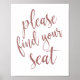 Poster Encontre seu sinal de Rosa de assento Dourado 8x10