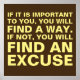 Poster de aspas motivacionais com texto de cor amarelo pálido sobre fundo marrom. O texto é " Se for importante para si, encontrará uma forma. Se não, você encontrará uma desculpa." Você pode personalizar a cor do texto e do plano de fundo de acordo com a sua semelhança.