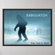 Representa um encontro noturno com Sasquatch (Pé Grande) em uma estrada rural solitário. Sasquatch está na silhueta contra os faróis de um carro. A leitura de texto "SASQUATCH" aparece em azul e branco brilhantes. Adicione seu próprio texto adicional. Se você vive ou viagem em áreas rurais do Noroeste do Pacífico você pode encontrar uma das espécies menos conhecidas de vida selvagem nativa da região. "Sasquatch" é um derivado anglicizado da palavra "Sésquac" que significa "homem selvagem" em uma língua materna americana salesa. O asquatch é uma criatura grande, peluda, parecida com macaco, de entre 6 e 10 pés de altura, pesando mais de 500 libras, coberta de cabelo castanho escuro ou avermelhado escuro. Alegados testemunhos descrevem grandes olhos, uma frigideira pronunciada e uma testa grande e baixa; o topo da cabeça foi descrito como arredondado e cretado, semelhante à crista sagital do gorila macho. O sasquatch é frequentemente relatado como tendo um cheiro forte e desagradável. As pegadas enormes para as quais ele é chamado são tão grandes que têm 24 polegadas de comprimento e 8 polegadas de largura. São frequentemente encontrados tubos de cabelo de espécies primatas não identificadas. A maioria dos cientistas diz que Sasquatch, também conhecido como Bigfoot, não é nada além de folclore e atribui avistamentos ou pegadas a erros de identificação ou enganos. No entanto, alguns cientistas como Jane Goodall acreditam que possa existir. Uma teoria sugere que Sasquatch é uma população relíquia de antigos hominídeos que chegou à América do Norte da Eurásia através da ponte de Bering Land durante um período de glaciação. Histórias sobre criaturas semelhantes a Sasquatch estão entre a população indígenas do Noroeste do Pacífico. As lendas existiam antes de um nome de solteiro para a criatura. Eles diferiam em seus detalhes tanto regionalmente quanto entre famílias de uma mesma comunidade. Histórias semelhantes são encontradas em todos os continentes exceto na Antártica para incluir o Yowie australiano. Membros do Lummi contam histórias sobre Ts’emekwes, a versão local do Pé Grande. As histórias são semelhantes entre si em termos das descrições gerais das Ts’emekwes, mas os detalhes sobre a dieta e as atividades da criatura diferiam entre as histórias de diferentes famílias. Algumas versões regionais continham criaturas mais nefastas. O estiyaha ou kwi-kwiyai era uma raça noturna que as crianças foram instruídas a não dizer os nomes para que os monstros não ouvissem e viessem ao carregar de uma pessoa - às vezes para serem mortos. Em 1847, Paul Kane relatou histórias das pessoas nativas sobre os Skoocooms: uma raça de homens selvagens canibais que vivem no pico da Rua Monte Helens. Os céus parecem ter sido considerados sobrenaturais, preferencialmentes do que naturais. Existem versões menos ameaçadoras como a gravada pelo Reverendo Elkanah Walker. Em 1840, Walker, missionário protestante, gravou histórias de gigantes entre os Americanos nativos que moram em Spokane, Washington. Os indianos alegaram que estes gigantes viviam nos picos das montanhas vizinhas e à volta deles e roubavam salmão das redes dos pescadores. As lendas locais foram combinadas por J. W. Burns em uma série de artigos de jornais canadenses no 1920. Cada idioma tinha seu próprio nome para a versão local. Muitos nomes significavam algo nos moldes de "homem selvagem" ou "homem peludo", embora outros nomes descrevessem ações comuns que se pretendia realizar (por exemplo, amêijoas alimentares). Burns cunhou o termo Sasquatch, que é do Halkomelem sásq’ets (IPA: [ˈsæ sq'Ajad]), e o usou em seus artigos para descrever um tipo hipotético de solteiro de criatura refletido nessas várias histórias. Os artigos de Burns popularizavam tanto a lenda quanto seu novo nome, fazer que ele conhecia no oeste do Canadá antes de ganhar popularidade nos Estados Unidos. O BFRO fornece uma base de dados gratuita a indivíduos e outras organizações. Seu site na internet inclui relatos de toda a América do Norte que foram investigados por pesquisadores para determinar a credibilidade.