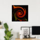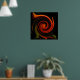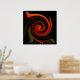 Este poster de arte fino apresenta um padrão circular de redemoinho em cores brilhantes de vermelho, laranja, verde, amarelo, marrom e preto. O desenho abstrato é uma visão impressionista da energia giratória da criação.