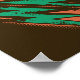 A trabalho de arte apresenta um fundo castanho escuro com braçadas, arrojadas, de cor laranja avermelhada e verde-turquesa que se cruzam num padrão dinâmico, semelhante a um raio. Os pontos de meio-tom e as texturas espalhadas melhoram as bordas, adicionando energia e intensidade bruta. O contraste entre o marrom-terra, o laranja nojento e o verde-turquesa vibrante cria uma composição abstrato de inspiração urbana impressionante que se sente agressiva e eletrificante.