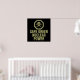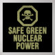 O slogan "Safe Green Nuclear Power" escrito em uma fonte original, em negrito e angustiada, em estilo de manchete, junto com um símbolo de veneno estênciado igualmente angustiado. Você não pode matar ironia.