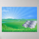 Energia renovável através de pilares solares num campo verde. Esta design parece realmente eficaz nestes Poster