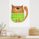 Poster de gata de cor-de-água engraçada para cama e café da manhã, albergue e outros negócios.