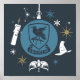 Confira este belo brasão da Casa Corvinal em um enfeite de Natal, rodeado por uma vela flutuante, estrelas e faíscas mágicas, flocos de neve, o Chapéu Seletor e o Diadema de Corvinal
