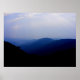 Uma fotografia fantástica do Parkway Blue Ridge, de uma manhã sombria através do topo da montanha, com a luz solar filtrando através das nuvens matinais.