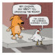 Esta poster engraçada mostra um cachorro que quer saber por que o frango não está atravessando a estrada. São as piadas — as piadas horríveis que mantêm a galinha sentada sobre suas penas na cauda. ©2015 Chuck Ingwersen