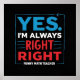 Uma design de professor de matemática divertida e ousada com a frase "SIM. ESTOU SEMPRE CERTO - PROFESSOR DE MATEMÁTICA ENGRAÇADO" em tipografia azul, branca e vermelha vibrante. Perfeito para educadores que querem mostrar seu amor pela matemática e pelo humor. Ideal para T-shirts, canecas e acessórios escolares.