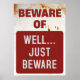 Engraçado sinal de 'Cuidado de' poster com um tom humorístico: 'Cuidado... Apenas Cuidado. Perfeito para decor de parede peculiar ou um sinal de aviso humorístico.