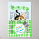Esta poster tem uma ilustração de gato giro como um presente engraçado excelente para a parede de alguém se eles amam gatos calicos. Esta é a receita de um café da manhã puro para gatos. Apresentando um gato calico com um pano verde de mesa gingham. Uma ilustração fofa e engraçada.
