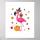 Poster Engraçado Flamingo Turquia Ação de Graças Pumpkin