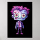 Poster com uma bela ilustração. Monstro de Frankenstein com cabelo rosa e roxo e um casaco e gravata.