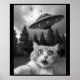 Poster Engraçado Gato Selfie com Óvni Alienígena Drones