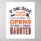 Se Uma Porta Fecha Outra Abre Sua Casa É Assombrada. Dia de as Bruxas engraçado de fantasia para vestir quando você for Trick ou Tratar. Esta mercadoria assustadora e esquisita é excelente de uma festa noturna assustadora de Halloween com fantasmas assustadores ou filme de terror. Vai bem com a decoração de Halloween de Jack O Lantern, abóbora, fantasma, crânio, esqueleto, bruxas e gatos pretos. Legal vintage e trato de Halloween para aqueles que amam humor, sarcasmo, piadas, citações e trocadilhos.