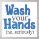 Lembre os amigos e familiares da importância de lavar as mãos com esta engraçada placa de higiene do banheiro das mãos. Este design apresenta um simples fundo branco com um texto moderno estilizado que diz "Lave suas mãos (não, sério)." O texto está em azul e preto.