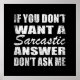 Se você gosta de citações sarcásticas engraçadas ou designs humorísticos excelentes então esse slogan original " Se você não quer uma resposta sarcástica, não me pergunte " é para você. É um presente excelente para sua família, amigos ou para você mesmo! Esta design é ideal para quem ama sarcasmo e humor. Se você gosta dessa citação engraçada, veja trabalhos de arte mais parecidos na loja Omitay. Fique seguro e obrigado você por apoiar um artista local.