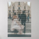 Grande pôster com uma foto de casamento e os votos do casal ou texto personalizado. Personalizado com os nomes dos noivos e a data do casamento na parte inferior. Presente de casamento ou decorações para casa para os recém-casados com estilo de caligrafia. A imagem tem uma camada de transparência sobre ela para que a mensagem seja legível. Você pode alterar a posição da imagem ou mover o texto clicando no botão para editar o design.