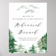 Ponha o tom para o seu casamento em floresta com o estonteante sinal de boas-vindas! Ele apresenta design de floresta aquática e roteiro moderno. Personalize este sinal de brunch de ensaio de floresta adicionando os detalhes do seu evento. Perfeito para casamentos com temas florestais, casamentos no inverno e casamentos ao ar livre. Disponível em vários tamanhos para ajustado do seu local, seja uma reunião íntima ou um evento maior. Itens correspondentes estão disponíveis.