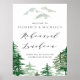 Ponha o tom para o seu casamento em floresta com o nosso espantoso e personalizável sinal de boas-vindas! Ele apresenta design de floresta aquática e roteiro moderno. Personalize esta placa de almoço de ensaio da floresta adicionando os detalhes do seu evento. Perfeito para casamentos com temas florestais, casamentos no inverno e casamentos ao ar livre. Disponível em vários tamanhos para ajustado do seu local, seja uma reunião íntima ou um evento maior. Itens correspondentes estão disponíveis.