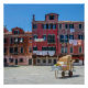 Praça de Veneza. Carrinho com caixas no meio da antiga praça italiana com edifícios coloridos em Veneza, Itália. Correio, serviço de entrega em Itália. Caixas deixadas sozinhas.
