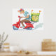 Um entregador de pizza em uma velocidade de ciclomotor vermelha junto com pizzas nas costas. Um design divertido que realmente capta a necessidade de velocidade com entrega de pizza. Perfeito como presente para o amante da pizza em sua vida ou para você em uma variedade de produtos Zazzle