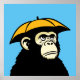 Imagem engraçada de um chimpanzé vestindo um chapéu guarda-chuva.