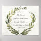 Uma poster personalizada de aspas inspiradoras mostra uma bela camada de aquarela com folhas tropicais. Ele apresenta Bíblia Verse Ephesianos 2:8, por Grace você foi salvo através da Fé, ... é o presente de Deus.