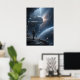 Experience the awe of deep space with this stunning sci-fi artwork featuring astronauts on a platform, a futuristic starship, and a breathtaking view of a swirling galaxy above a distant blue planet. Perfect for lovers of space art, sci-fi adventures, and cosmic exploration. Ideal for posters, tech cases, and gifts for space enthusiasts.