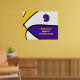 Este poster de festa de aniversário de boas-vindas da de basquetebol é totalmente personalizável e apresenta a imagem abstratamente sobredimensionada de uma bola de basquete que tem painéis roxo, branco e ouro alternados - personalize os detalhes da festa em roxo e ouro - por katz_d_zynes