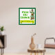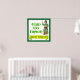 Um poster que lê Erin Go Braugh com a arte safena de um irlandês com um figurino vitoriano verde bebendo um brinde com um cálice prateado, uma faixa amarela que lê "Ruas felizes. Dia do Patrick" em letras verdes.