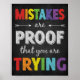 Erros são prova de que você está tentando poster, uma mentalidade de crescimento poster perfeita para motivar e inspirar seus alunos.