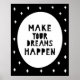 Decorem o berçário do vosso precioso com este adorável escândi preto e branco moderno faz os vossos sonhos acontecerem poster. © Julie McIver
