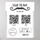 Essas varreduras negras exclusivas para pagar poster de sinal são personalizáveis e suas informações de negócios são fáceis de adicionar **também como download instantâneo**. Com 2 códigos QR, você pode escolher venmo, paypal, casface ou qualquer outro aplicativo de pagamento para vincular ao seu sinal para que os clientes paguem facilmente por essa compra. A coleção de bigodes é mais adequada para compras e compras barbeiros e marcas divertidas e divertidas.Este é um estilo poster que você pode colocar em um pedestal, em uma armação, na parede ou como uma poster lisa em uma mesa.