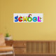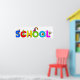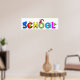 Ótima ilustração cartoon de meninos e meninas escalando em letras gigantes do alfabeto que soletra a palavra ESCOLA. Imagem disponível em vários presentes e produtos. Posters. Impressões.