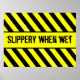 escorregadio quando molhado - sinal de aviso. Faça uma declaração, melhore a segurança, coloque esta poster engraçada na sua parede!