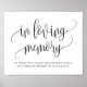 Sinal de Memoriam Elegante com uma linda escrita de caligrafia. Esta escrita em memória carinhosa é perfeita para casamentos, chás de bebê, chás de panela e muito mais. Itens correspondentes estão disponíveis. Personalize adicionando seus próprios textos.