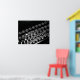 Um design com uma rica e contrastante foto em preto e branco de um teclado de máquina de escrever vintage com teclas bem vestidas.