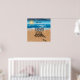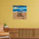 Pintura de praia com escritura.