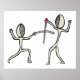 A design de vedação mostra dois especialistas em duelo com espeas e máscaras - demonstrando o impulso e as posições de partida. Legal gráfico para os entusiastas da esgrima.