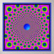 Nessa imagem bidimensional o arranjo das linhas e a design dá a percepção de um espaço curvo, com esfera flutuante. As cores nesta imagem não são "seguras para a Web" e, portanto, olhem para o monitor.