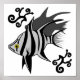 Cartoon de uma Esposa Velha olhando para você, te dando o olho. O peixe é ilustrado pela vista lateral com coral preto no topo e no fundo.