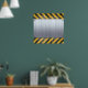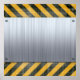Uma placa de metal escovada 3d rebaixada e rebatida sobre um fundo de faixas de perigo de construção. Personalize este excelente com seu próprio texto, monograma, logotipo ou mensagem pessoal! (clique no botão laranja "Personalizar!" acima)
