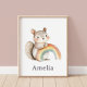 Adicione um doce toque de aquarela ao berçário do seu bebê com este impressão de parede de Cute Squirrel. Apresentando um adorável esquilo de floresta bebê segurando um arco-íris, este design moderno é perfeito para decorar uma sala de bebês ou para oferecer a novos pais. Adicione um nome personalizado para um toque especial e exclusivo!