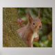 Um esquilo vermelho que parece estranho atrás de uma árvore.