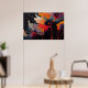 The contrast between darkness and radiant color creates a powerful atmosphere that feels both intimate and bold. The flowers are not defined by precise detail, but by movement and feeling, allowing the viewer to connect with the artwork on a deeper, more intuitive level. The layered textures and sweeping forms suggest passion, vitality, and the quiet strength found in nature’s cycles.