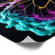 Essa trabalho de arte digital cativante mostra uma borboleta mesmerizadora criada de nuvens de fumaça colorida. Os intrincados padrões de turquesa, roxo e ouro se entrelaçam para formar as asas delicadas, irradiando um sentido de movimento e vida. O ousado contraste contra um fundo preto destaca a beleza etérea da borboleta, fazer-a uma espantosa representação da transformação e criatividade.