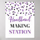 Sinal de estação de fazer de banda larga para chá de fraldas em um padrão confetti preto e roxo.